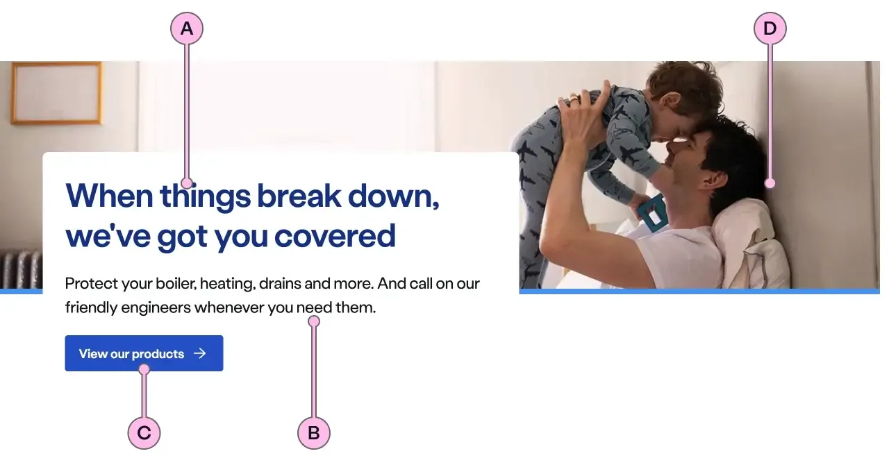 Landmarks are used to set the scene for what the page is for, what offers might be available and give helpful best next actions for users. This is where the main heading for the page will sit and give the overarching context to the rest of the page.